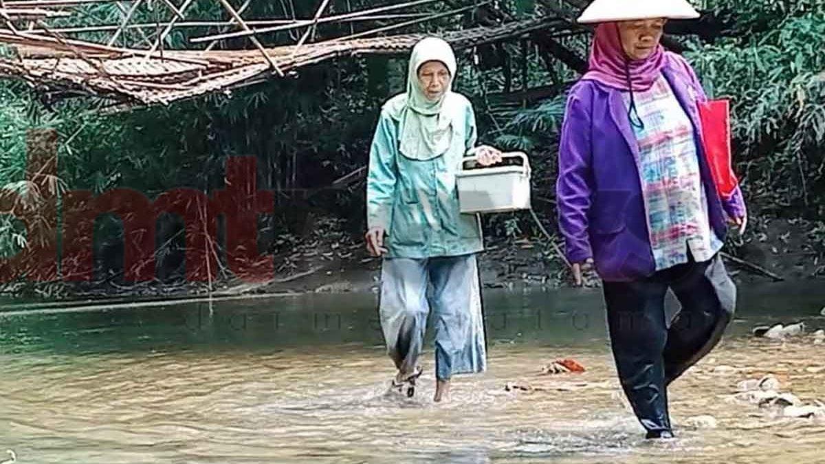 Jembatan bambu yang menjadi akses utama warga yang menghubungkan Dusun di Desa Purbahayu dan Desa Sukahurip, Kecamatan Pangandaran untuk beraktivitas sehari-hari kini kondisinya sudah rusak parah dan nyaris ambruk, Rabu 8 Oktober 2025. Berdasarkan pantauan di lapangan, bambu-bambu yang menjadi bantalan jembatan terlihat rapuh dan keropos sehingga membuat warga yang biasa melintas setiap hari kini tak berani untuk melewatinya karena khawatir jembatan akan roboh. Padahal, jembatan tersebut merupakan satu-satunya akses yang digunakan warga untuk pergi ke kebun, pengajian, sekolah, maupun kegiatan keagamaan. Akibat kerusakan itu, warga terpaksa menyeberangi sungai setiap hari. Namun, jika debit air sedang tinggi, aktivitas warga pun terhenti karena tak ada jalan alternatif yang bisa dilalui.