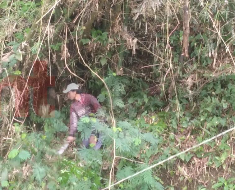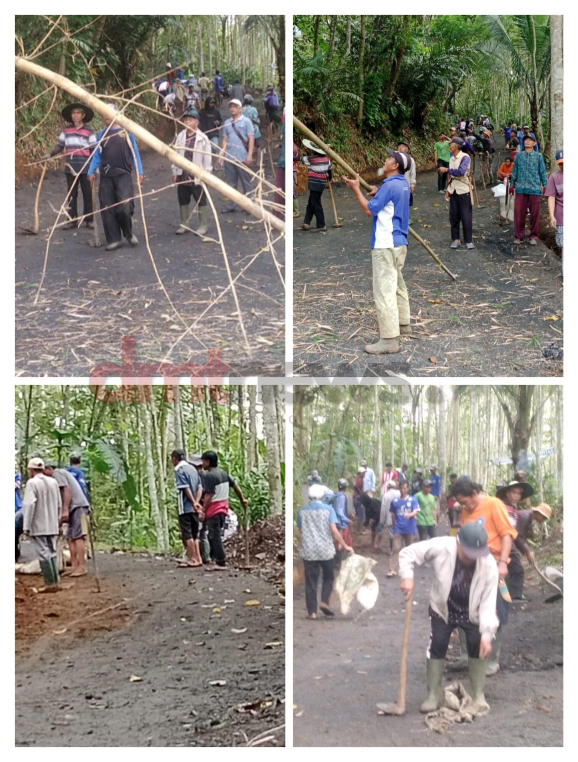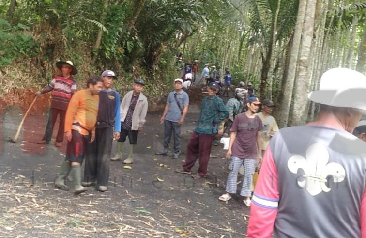 Warga Bersama Pemdes Nusawangi Laksanakan Gotong Royong Membersihkan Jalan Penghubung Dua Kecamatan